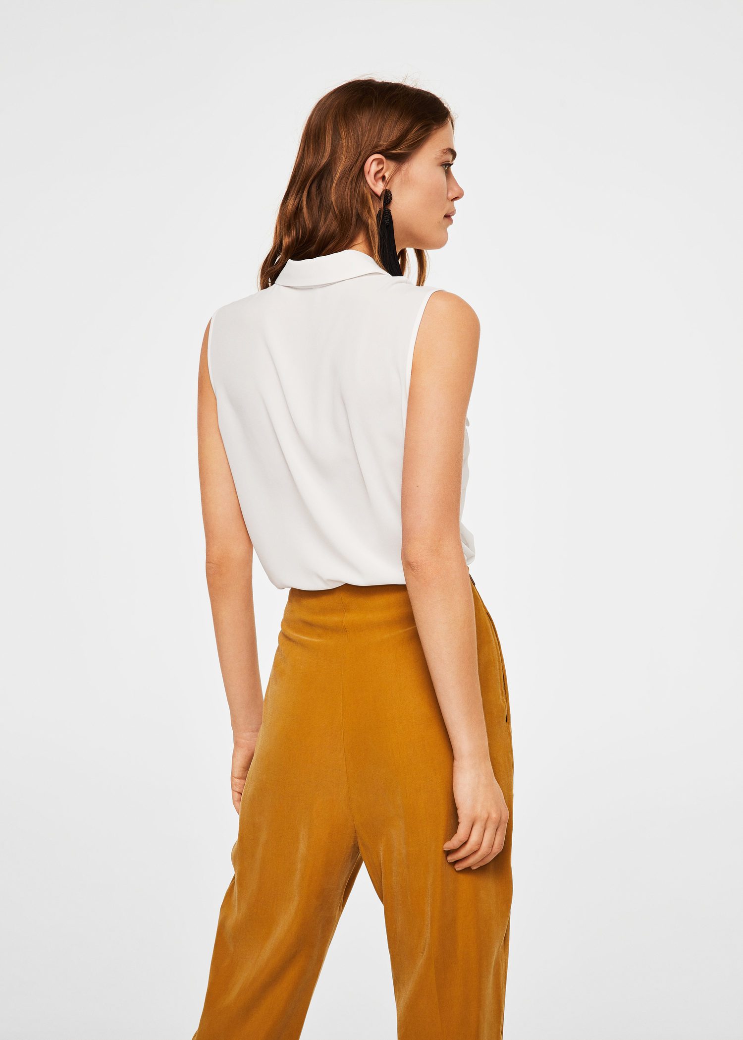 Linen and cotton mix. Straight design. Classic collar. Sleeveless. Removable belt at the waist. Two patch pockets on the front. Button fastening on the front section.